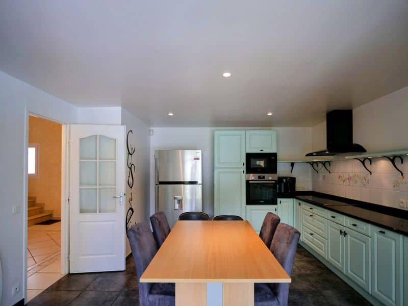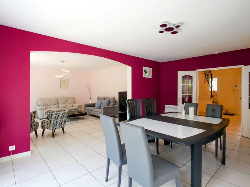 Maison lumineuse avec vue sur le jardin arboré et prestations haut de gamme : climatisation réversible, recharge de voiture électrique, maison écologique, alarme, pompe à chaleur, faible consommation électrique, excellente isolation et portail électrique.